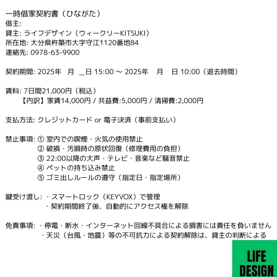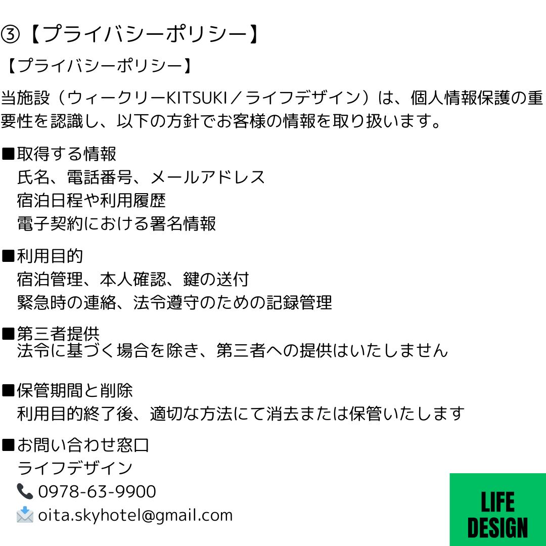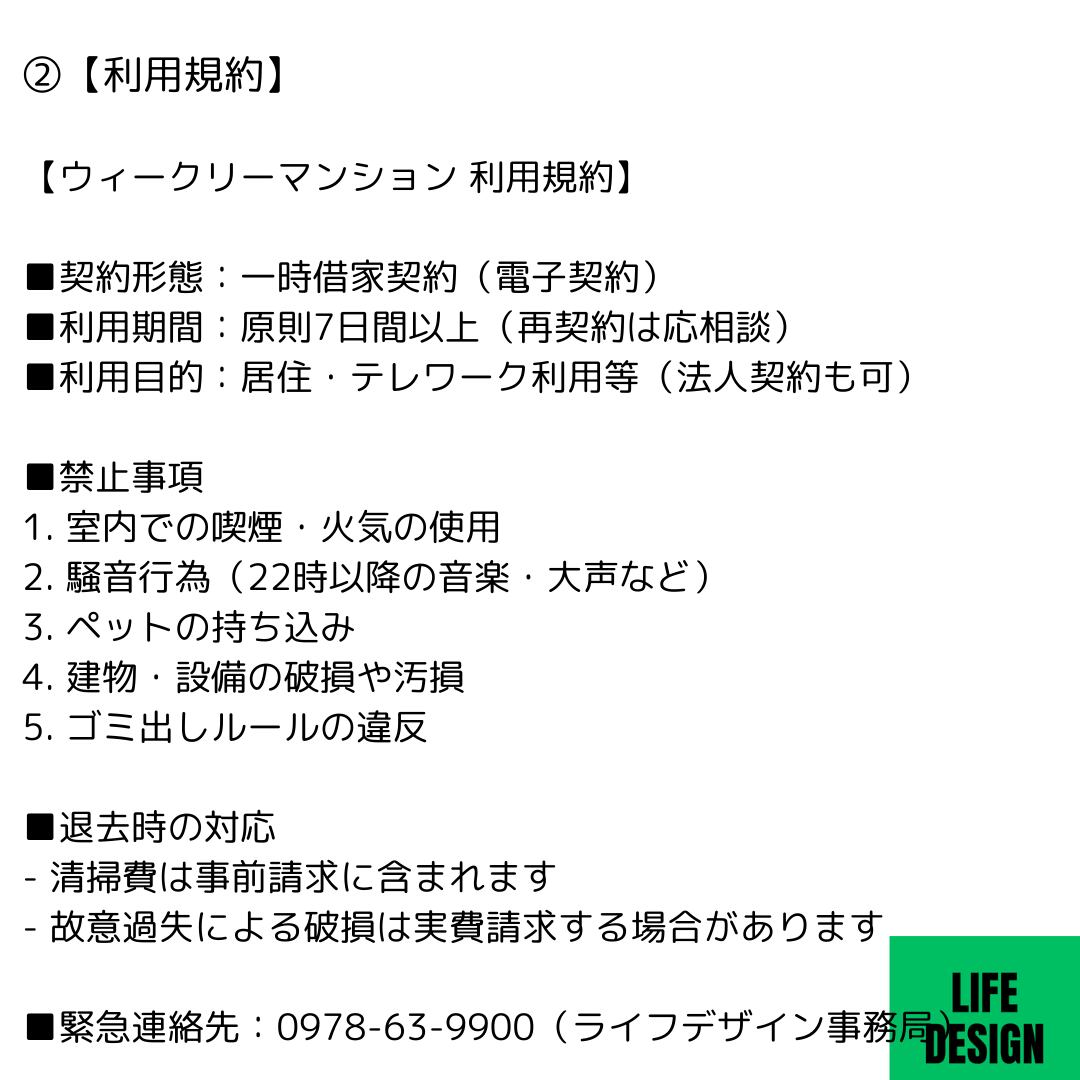施設情報⇔利用規約⇔プライバシーポリシー⇔一時借家契約書(ひながた)